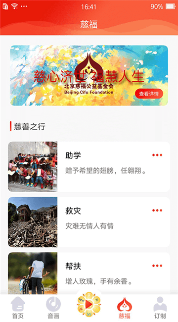慈善——放置慈福基金对助学,环保,帮扶贫困孤寡,护生等善行的公布和展示。