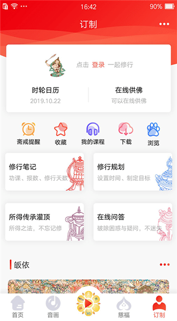6、在线修行,佛家俗门弟子可以在此设定修行规则、记录修行笔记以及传播佛法;