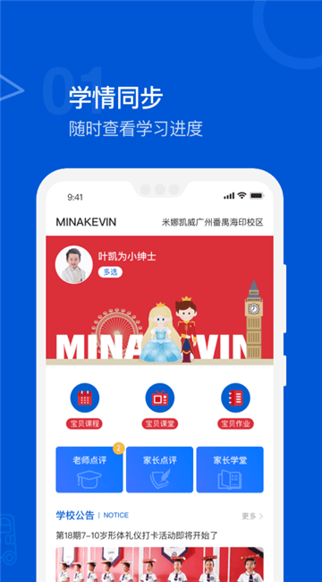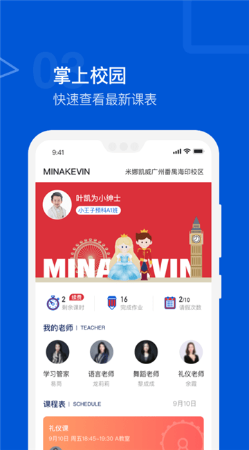 1.宝贝课程:可快速查看上课时间地点,方便联系任课老师、学习管家;
