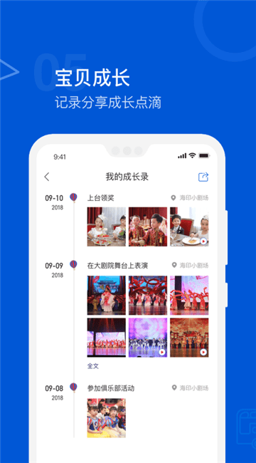 2.宝贝课堂:展示宝贝在课堂上的照片和视频,可分享到朋友圈;