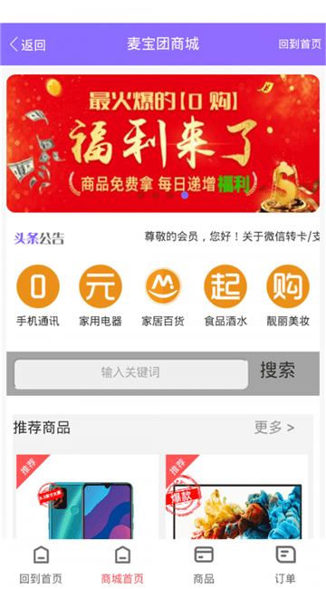 麦宝团商城是一款网络购物软件。在这里有海量优质商品,这里还有大额优惠券,让你花最少的钱买心仪的商品,感兴趣的朋友现在就下载吧!