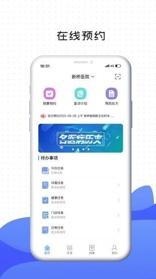 2、可以获取医护人员推送的任务,让病人每天都可以及时完成对应的内容;