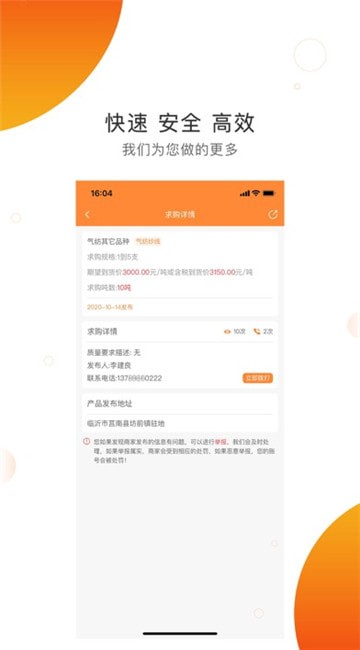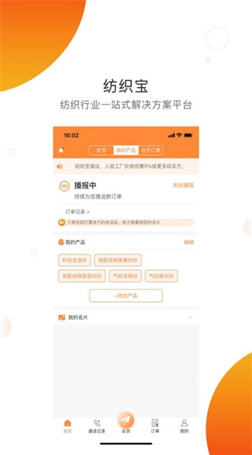 纺织宝APP是为了给纱厂和织布厂一个线上信息共享平台,织布厂可以在线上发布一定数量的求购纱线信息,纱厂用户登录,可以查看织布厂发布的求购信息,如果自己有符合要求的纱线,可以联系织布厂提供货物,APP内信息的发布、展示和查看都有免费的数量,如果超过免费数量,用户可以购买VIP增加自己查看信息、发布信息的数量。