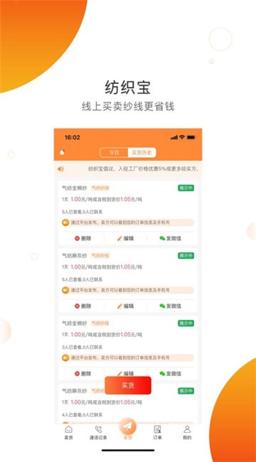 3、用户可以在线下单,收购交易纺织品原料;