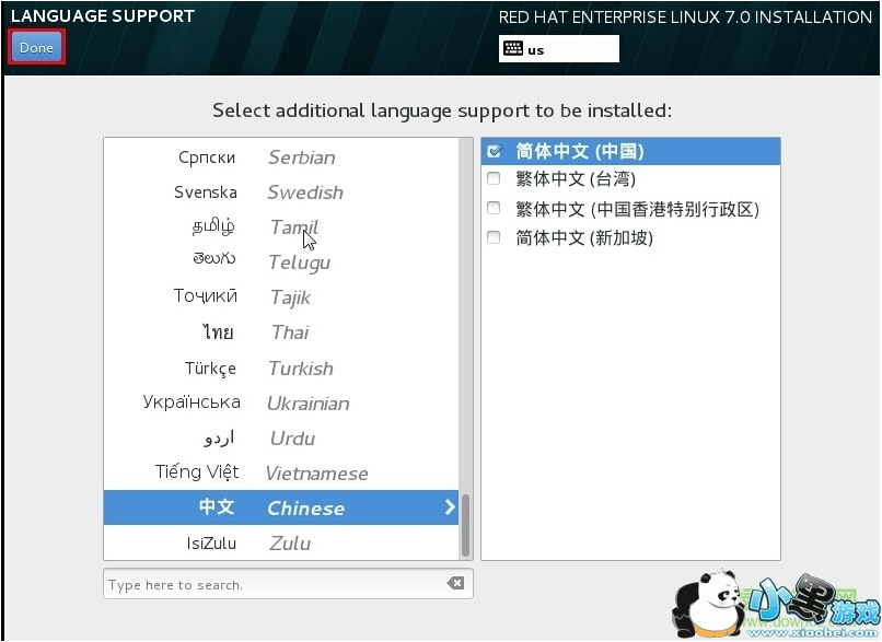 6. 选择中文支持,此处可多选(应测试需要,需用37种语言,当然如果有些语言没有就不添加了),但是支持的语言越多,安装过程需要的时间越长。