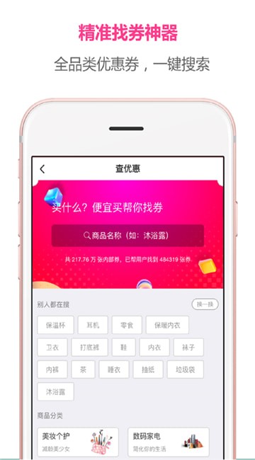 便宜买手机版是一款手机购物省钱的软件,在这合理拥有全品类的优惠券,用户一键搜索可以精准查找优惠券,用户可以每天参与抢红包、签到、热销榜、特价区等活动,让你边买边省,有需要的朋友快来单机8下载使用吧!