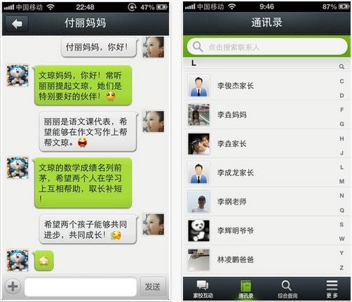 1、家校互动,随时随地在线沟通,了解学生在校情况,分享家校教育经验。