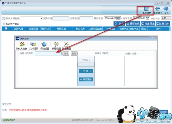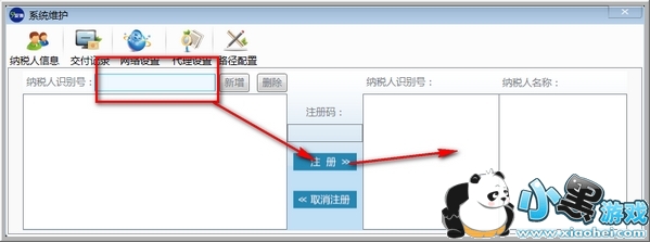 三、输入纳税人识别号,填写注册码,点击注册即可添加新的纳税人名称批量管理。