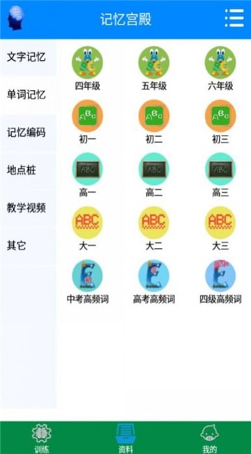 记忆宫殿是一款锻炼大脑的服务软件,我们为用户提供了海量优质的锻炼方式,可自由选择操作,让你可以轻轻松松锻炼自己的记忆力。app为用户提供了记忆比赛、综合记忆以及更多脑力服务,让每一位用户都能轻松实现操作,简单方便。为用户提供的锻炼内容涵盖了小学、初中、高中以及大学单词,可畅享在线学习,轻松记录,掌握更多的知识。以文字记忆、单词记忆、记忆编码、地点桩以及教师视频等多种方式为用户提供服务,可自由选择学习,掌握更多的的知识简单方便。记忆宫殿app无限用户使用的时间,进入应用就能自由体验。