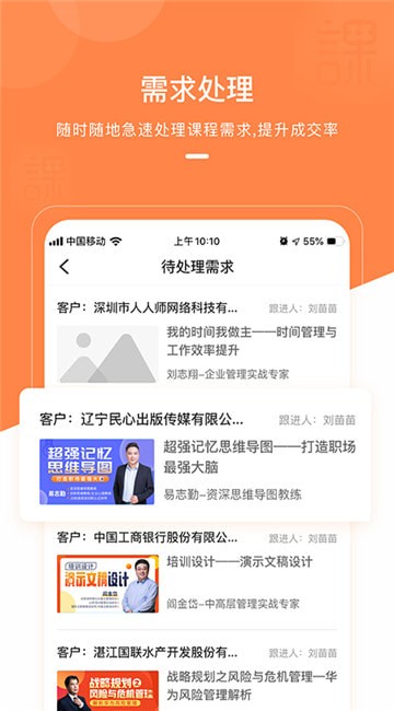 随时随地急速处理课程需求,提升成交率。
