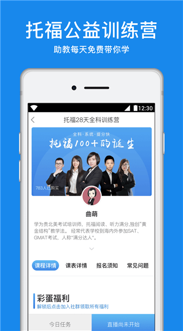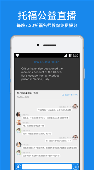 练习任务-公益课-精品录播课-微信群联动备考托福,每天助教老师带着大家一起免费备考,给大家营造一个托福学习环境。