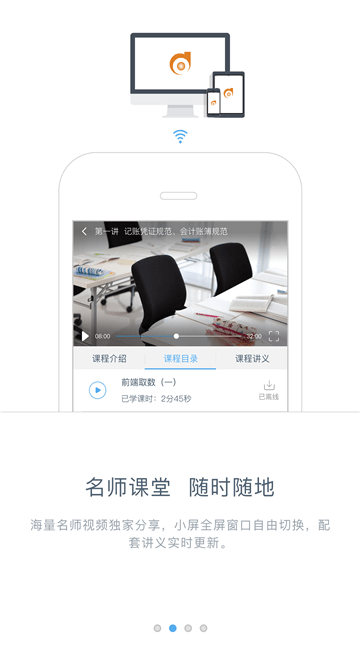 离线学习,无须流量,不用暂停即可操作离线,更能浏览本课全部课件,扁平化操作高效易用