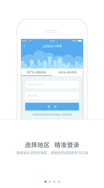 选择会计证所在地区并输入账号密码进行登录;