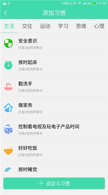 习惯添加功能,老师和家长可随时添加习惯;