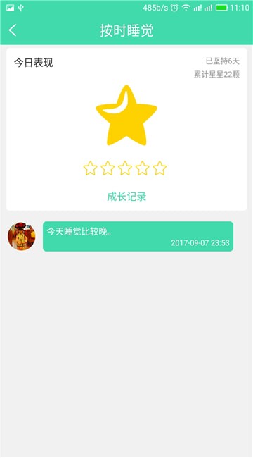在奖励界面,能够查看今日的成长表现