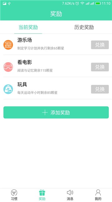 自定义的习惯预计奖励添加,十分的方便;