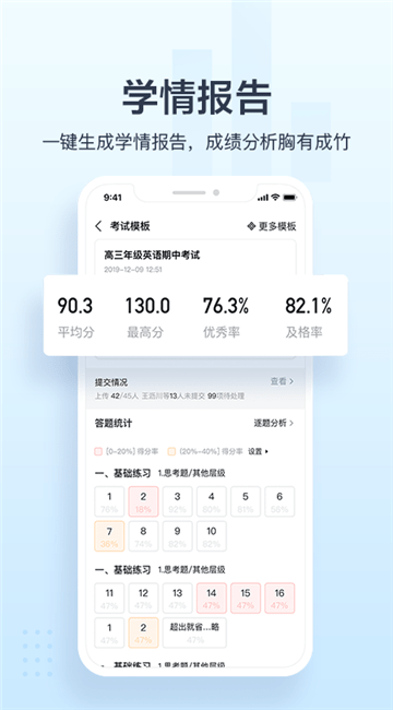 学情报告:一键就可以生成学情报告,精准分析指导教学;