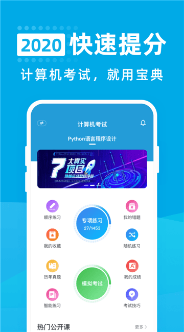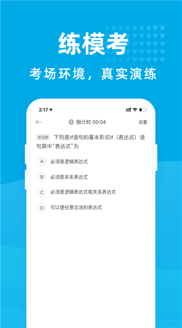计算机考试宝典安卓版是一款全国计算机等级考试必备软件,用户能够在线做历年真题,每道题目都有专业解析,帮助妮弄懂知识点,还能看简章,资讯实时阅读,大纲式解读,同时用户还能练模考,考场环境模拟,真实演练,帮助你顺利通过考试考取证,有需要的朋友欢迎前来下载体验!