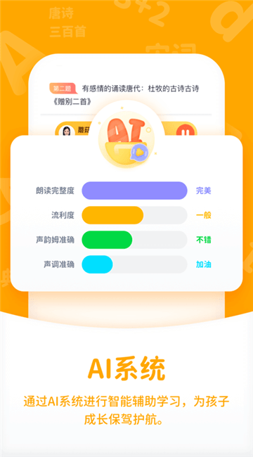 3、通过AI系统进行智能辅*助学习,为孩子成长保驾护航。