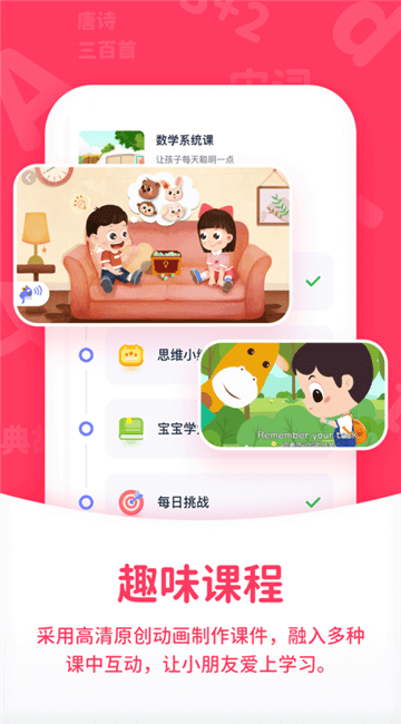 小鹿学堂手机版对标中国孩子的学习特点,让孩子坐得住、喜欢学。
