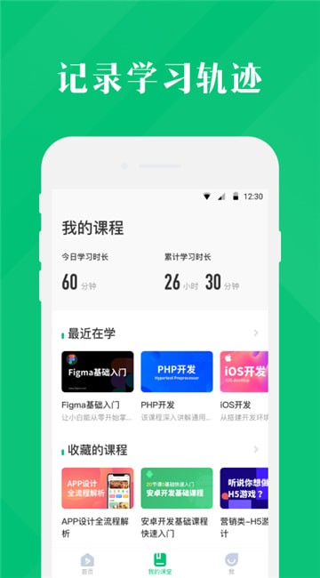 1、在app中能够选择课程进行浏览