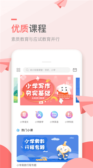 万门小学最新版是一款教学学习的应用软件。平台内课程内容丰富多彩,涉及多种方面课程教学,适应于多种人群进行学习,不断提升学习能力,掌握更多课程课程知识点。专业视频教学课程,随时在线进行选择,轻松加入到学习中,学习更多课程重点、考点内容。课程模拟训练学习,强化学习过程,不断查缺补漏,稳步提升个人能力。个人学习计划快速制定,每日紧跟学习任务完成课程学习,不断提升个人综合实力。更多闯关游戏在线参与,寓教于乐,个性化学习方式,让学习变得更加轻松。现在就快来下载万门小学最新版使用吧,快速进行课程选择,加入到学习中。