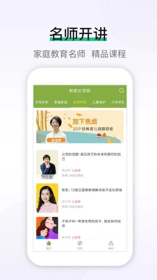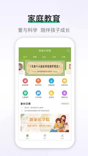 1.新家长学院app通过集聚社会各界力量,创建服务于广大家庭的新媒体教育平台,广泛开展满足家长和儿童需求的家庭教育指导服务,