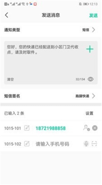 2、帮助快递员群发快递短信通知,提高服务、效率降低运营成本、提高客户体验。