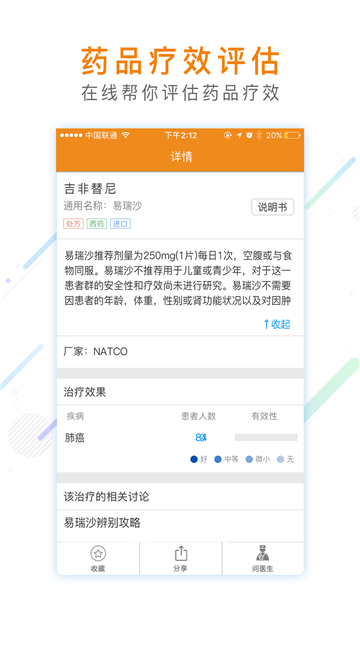 3、还能直接查询治疗效果,方便选定合适患者的抗癌药品;