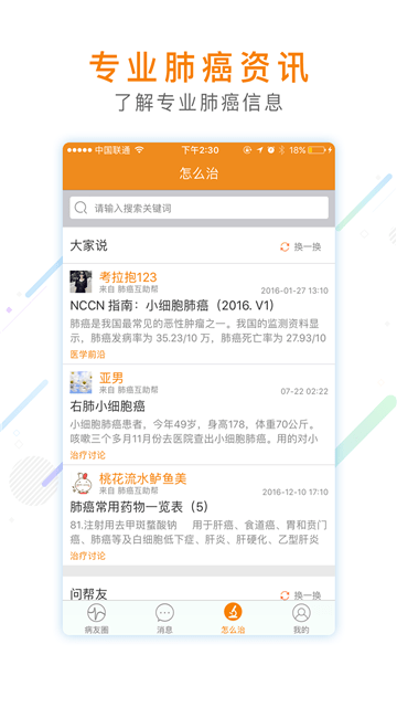 3、新鲜的肺癌医疗资讯,不断更新带来新内容,方便让更多人进行专业知识学习;