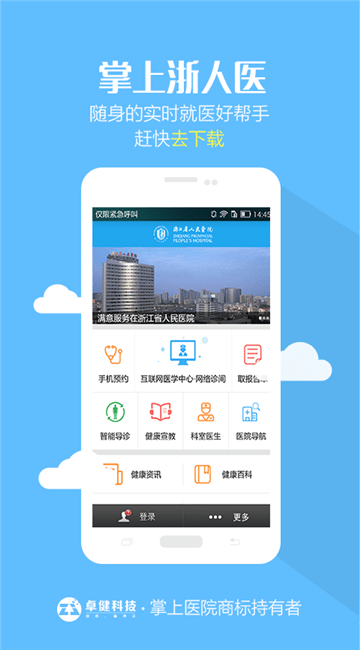 掌上浙人医手机版是一款基于浙江省人民医院医疗资源的掌上就医应用,专注于提供便捷的健康医疗服务,以医院医院全部服务为基础,能够在线为各位需要看病的人打造预约挂号、智能导诊和医生寻找、健康宣教等线上健康医疗服务项目,并且能够在医院导航指引下为到院就诊的人指引科室方向,第一次到浙江省人民医院的人可以在导航指引下快速找到自己挂号的科室,而且能够在线任选科室医生,挂号的时候即使是专家号也能找到。这个健康医疗服务app聚集的健康资料资源也有很多,除了线上的健康宣教内容外,这里的健康资讯和健康百科也能为用户提供健康信息资源,非常好用。