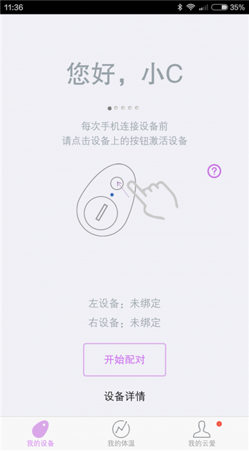 1、成功的安装app以后,用户就可以在“我的设备”界面快速的选择“开始配对”