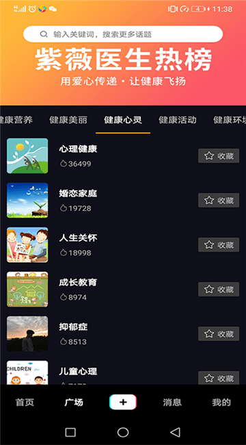 6、广场模块,为你带来了各种各样的健康栏目,可以自由选择;