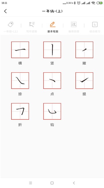 2、学习基本的笔画,了解各个偏旁部首的书写方式;