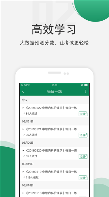 卫生资格考试准题库安卓版是一款随时在线刷题提升分数的医学教育学习软件,医学考生用户可以快速查找自己想要的学习资源和教学视频,提升学习成绩。卫生资格考试准题库是一款手机刷题软件,主要提供卫生资格职称考试题型,包含成千上万个题性,丰富多样,每天还有教师授课,制定有针对性的学习计划,一站式解决刷题、听课两大需求!用看书30%的时间顺利高分通过卫生职称资格考试。准题库主要覆盖考试为初级卫生职称考试和中级卫生职称考试。包括:护师,主管护师,主治医师,药师,药士,临床检验技师,临床检验技士,内科主治医师,外科主治医师,儿科主治医师,中医内科主治医师,初级药士,初级药师,主管药师,初级中药士,初级中药师,主管中药师,临床检验主管技师等卫生职称考试。一站式解决刷题、听课两大需求!用看书30%的时间顺利高分通过卫生职称资格考试。