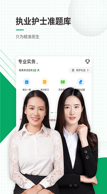 一站式解决执业护士资格考试刷题、听课两大需求!用看书30%的时间顺利高分通过执业护士资格考试。