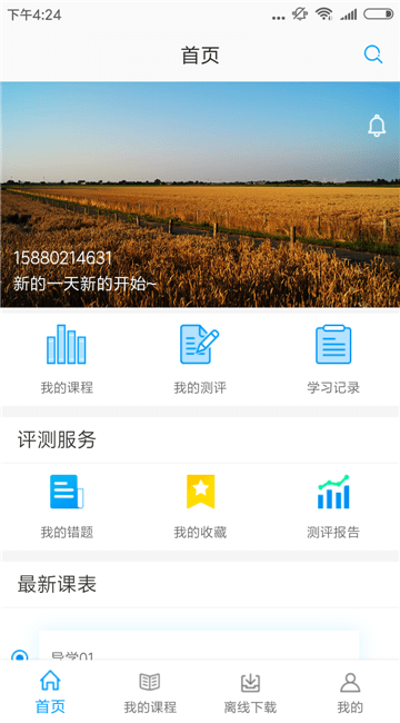 3、进入首页,点击我的课程、我的测评、学习记录等板块进行学习