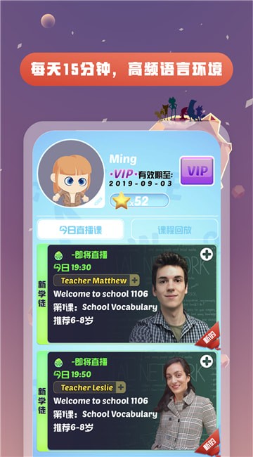 每天15分钟,北美外教实时直播,在语感中积累词汇;