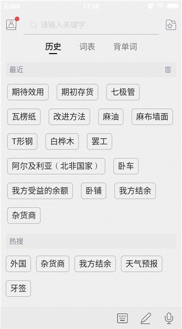 3、自动为用户提供商务法语的热搜词,无需自己输入就能一键查询词汇;