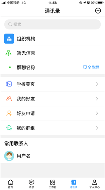 学生之间工作,学习的配合,功能包括学校通讯录,聊天通讯都可以使用;