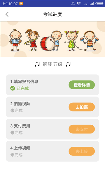 能够记录出所有的考级内容,浏览到考级信息和进度;