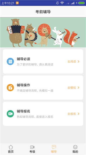 视频考级平台还增加了“考前辅导”的功能选项。这是视频考级为考生提供的线上辅导程序,专门服务于考生在学习和备考中的咨询和资深专家的指点。