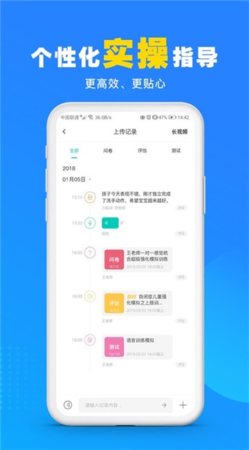 实现三方联动,家长端与康复机构端和康复老师端是实时对应对接的;