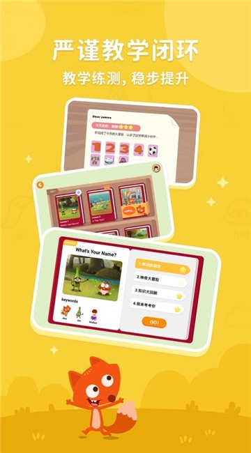小狐狸英语,3~8岁儿童英语启蒙绝佳选择!超有趣的外教1对1授课+趣味动画情境交互学习,还有丰富的课外拓展(儿歌、MV、绘本、游戏...)。坚持以“听说”为基础,遵循语言习得规律,旨在培养孩子英语思维、激发语言天赋,让每个孩子的英语都能脱口而出。