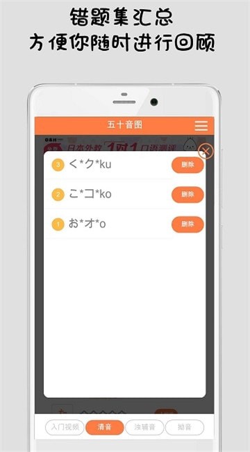·错题汇总小列表,让你随时随地进行回顾,快速解决五十音图学习上的拦路虎