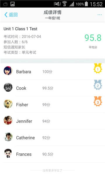在单元测试页面,可以查看学生的单元测试成绩