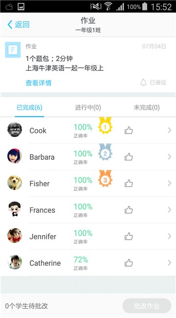 全新的学生氛围,学生在线查看自己的学习转态,和别人对比,奋力赶超;