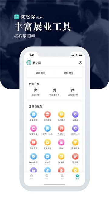 优悠保app下载,一款专为保险人打造的移动展业服务平台,通过优悠保app可以随时随地进行业务拓展,客户管理保单跟进等事宜,有需要就来下载体验!