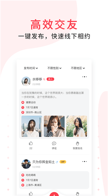 4、体验高端会员交友,女性真人认证加上男性会员制则可以打造高端的交友平台;