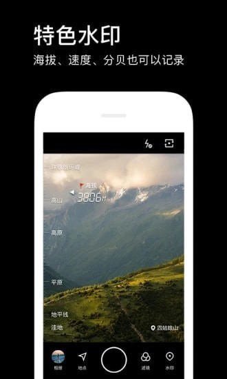智能的水印模版:地点、时间、分贝、海拔、,智能水印自动添加到照片上;